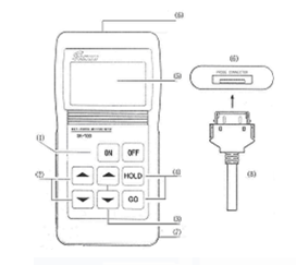 連接:將需要的探頭的插頭(8)輕輕插入本體的探頭插座(6)、順時(shí)針旋轉(zhuǎn)緊固。